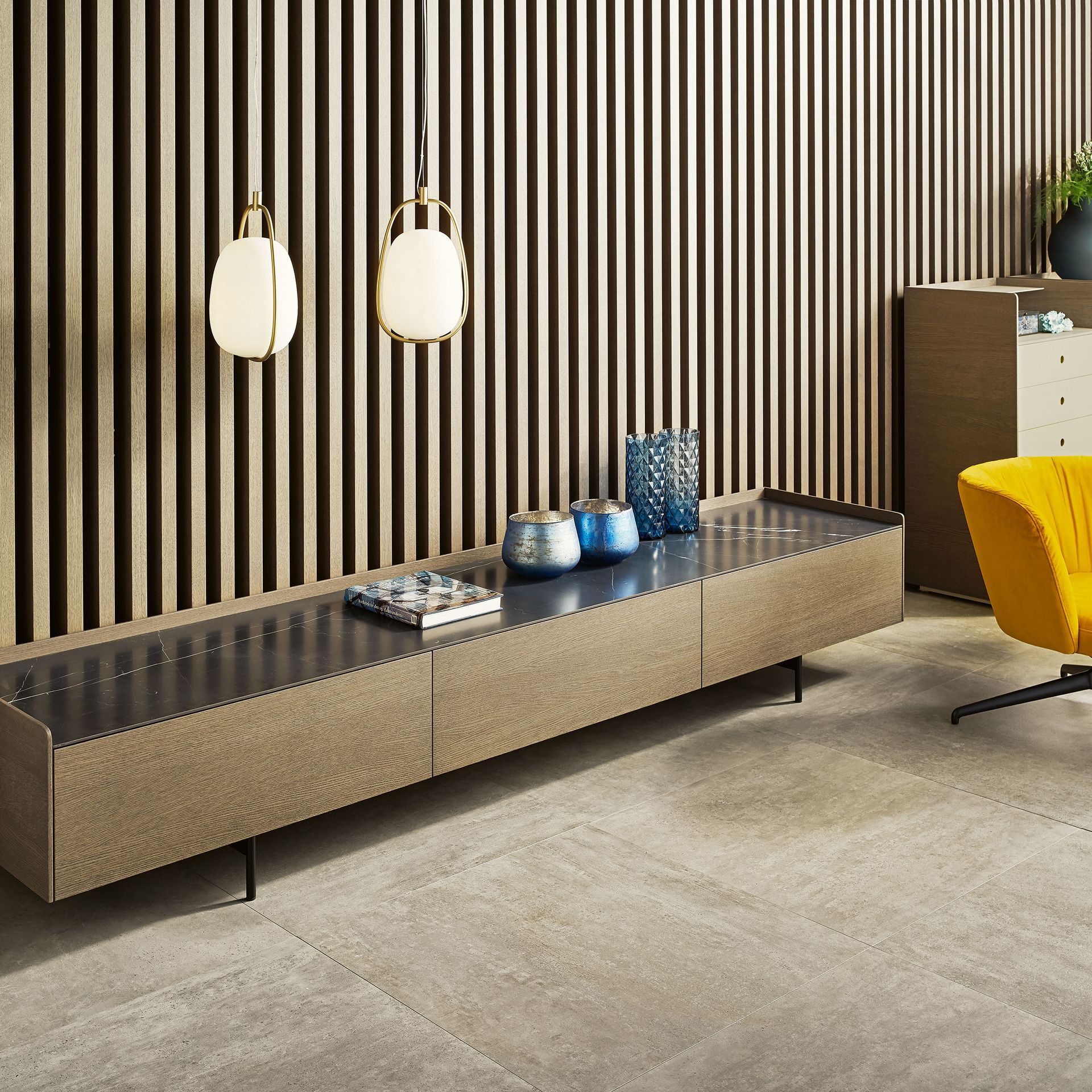 Wohnlandschaften hier, hochbeinige und grazile Sofas als Blickfang da. Auch das Auge wohnt mit. Deshalb schaffen zwischendurch oft schwarze, aber auch glänzend silberne oder farbig lackierte Metallgestelle farbige und designtechnische Kontraste – und wirken dadurch platzsparend und dennoch sehr elegant.